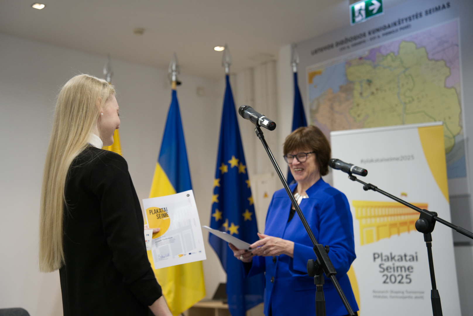 Participating in Plakatai Seime was truly a transformative experience. Having the opportunity to present our research directly to members of Parliament gave me a completely new perspective on how academic work can influence real-world policy and decision-making. The event challenged me to communicate complex ideas in accessible ways and taught me the importance of bridging the gap between research and practice. Standing in the halls of Parliament, sharing our posters with legislators and guests, made me realize that as students, our voices and our work genuinely matter.